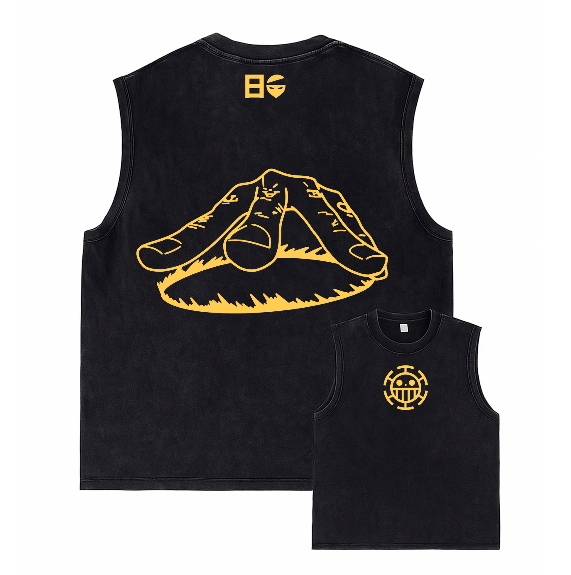 This tank top features a striking back illustration inspired by Trafalgar Law’s signature battle stance — calm, calculated, and ready to strike with surgical precision. The design captures the intensity and elegance of Law’s technique in a clean anime-style linework.