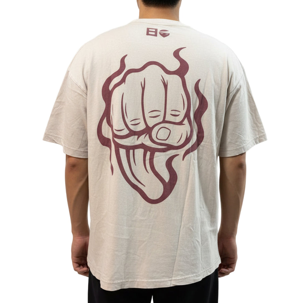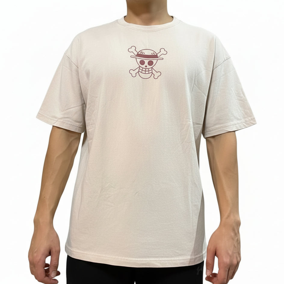 The back features a striking illustration of Luffy’s punch, surrounded by dynamic energy lines that capture the impact and movement of his peak form. The front keeps it minimal with a subtle Straw Hat Jolly Roger, letting the main artwork speak for itself.
