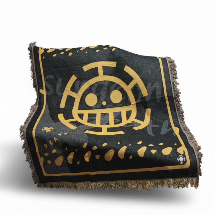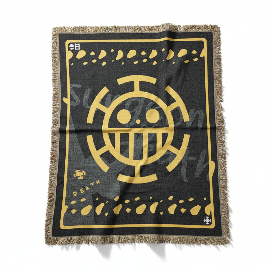 Inspired by Trafalgar Law’s iconic style and the Heart Pirates, this premium woven tapestry brings the surgeon of death’s energy straight into your space.